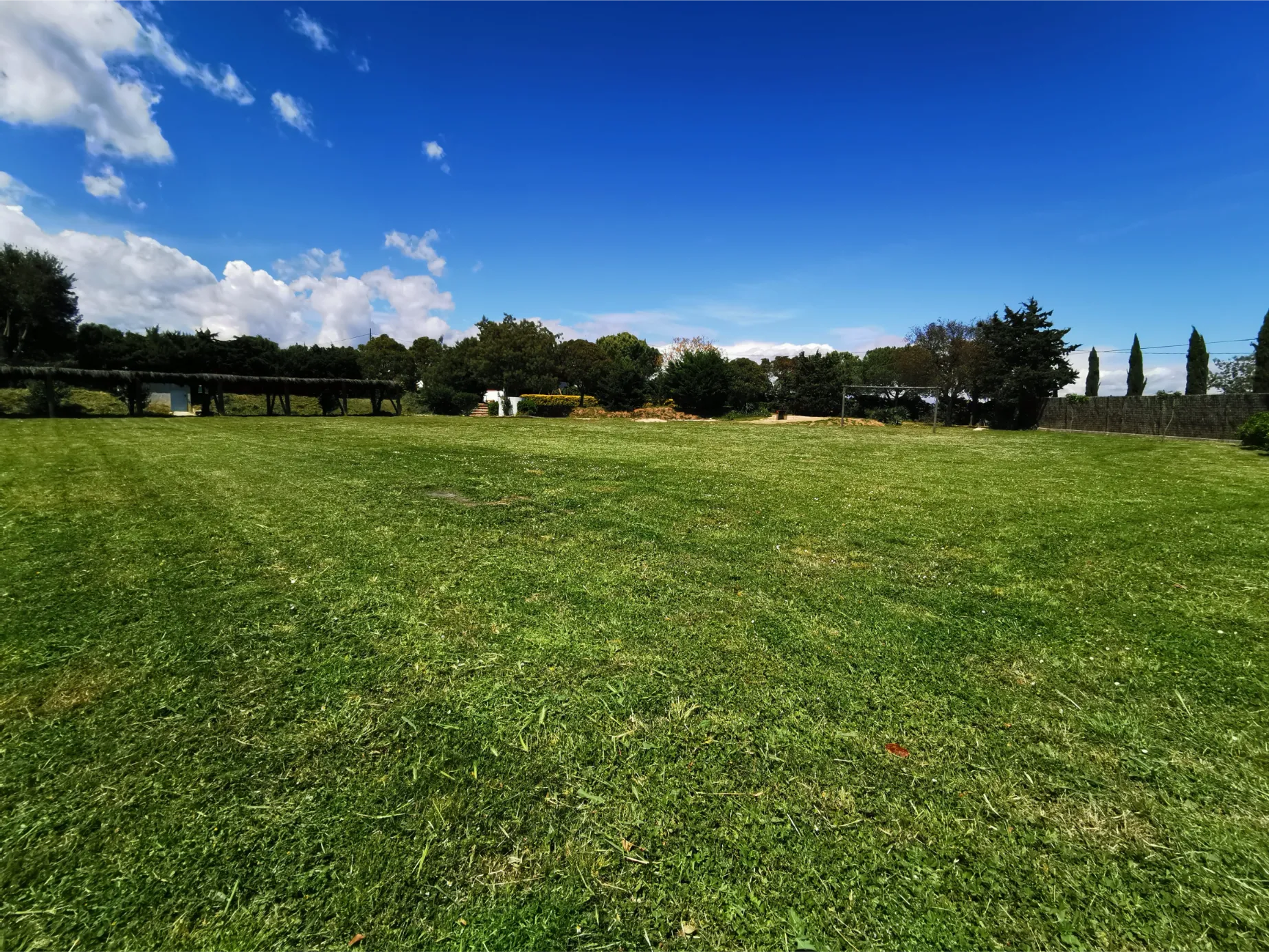 En el jardín hay un gran espacio de piscina, perfecta para refrescarse en un día caluroso. La piscina está rodeada de césped y árboles, lo que la hace un lugar ideal para relajarse y disfrutar del entorno.