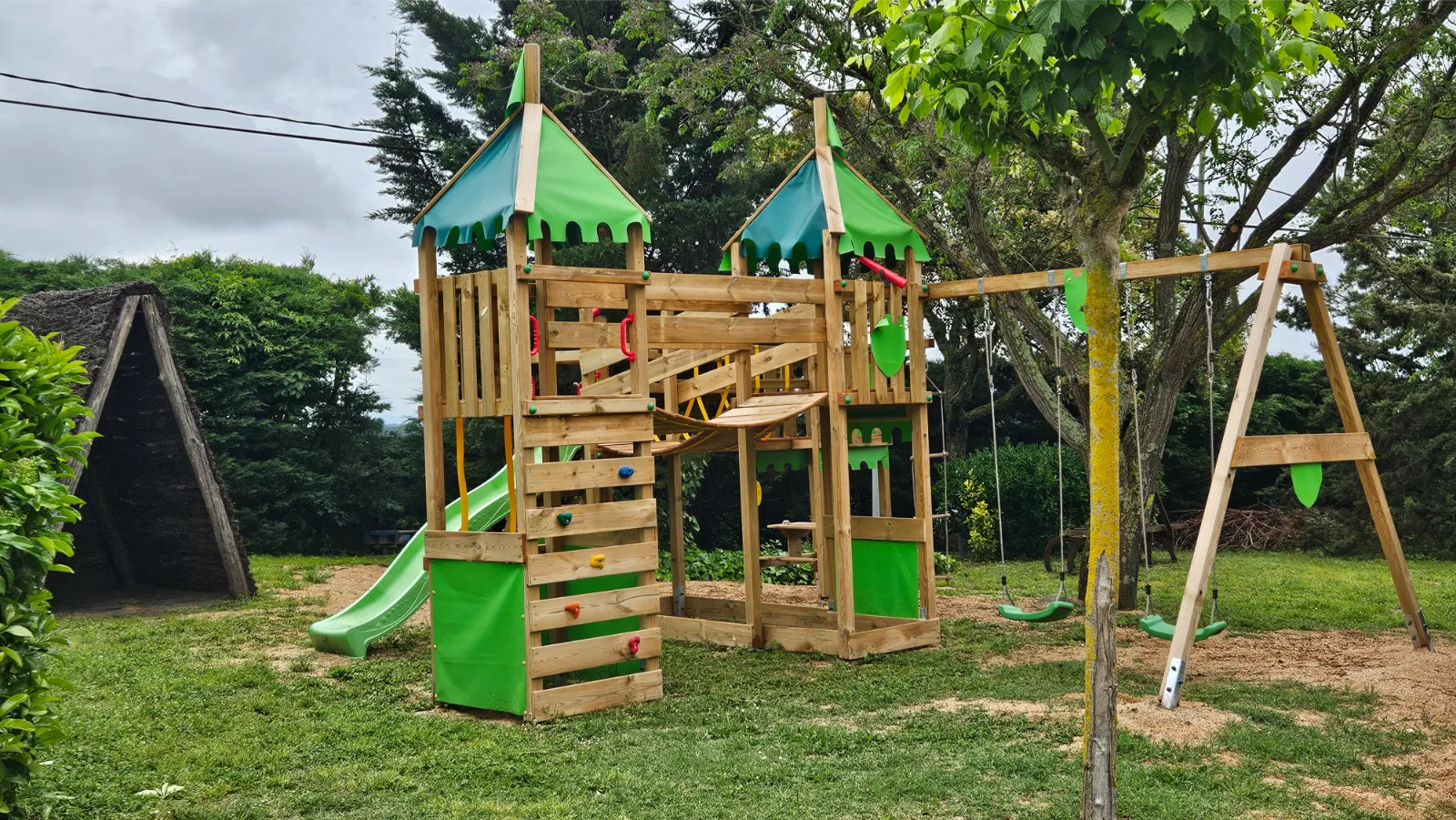 Diviértete jugando en el jardín de la casa rural, un gran espacio de naturaleza.